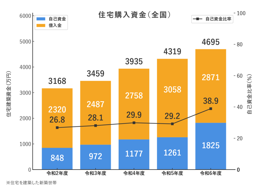 住宅金融支援機構の「2024年度フラット35利用者調査」によると、土地あり注文住宅の所要資金は全国平均で3,936万円です。