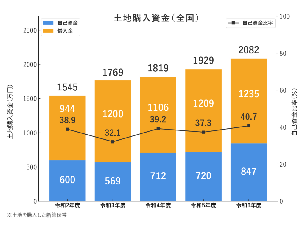| 土地 | 首都圏郊外や中核都市で40坪前後。坪単価30〜40万円が目安。 |