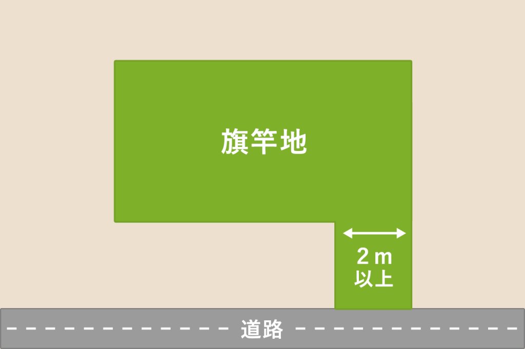道路から路地のように伸びる土地の先に、ある程度の広さがある土地のこと。竿と旗がセット担っているような形から、この呼び名が付けられています。路地のように伸びているところには、建物が建てられない分、土地を安く購入できます。