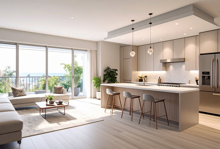 LDKを一体型にすると空間の広がりや家族の一体感を得やすく、開放的な雰囲気を演出できます。一方で、料理中のニオイや音がリビングに伝わりやすい点は注意が必要です。
